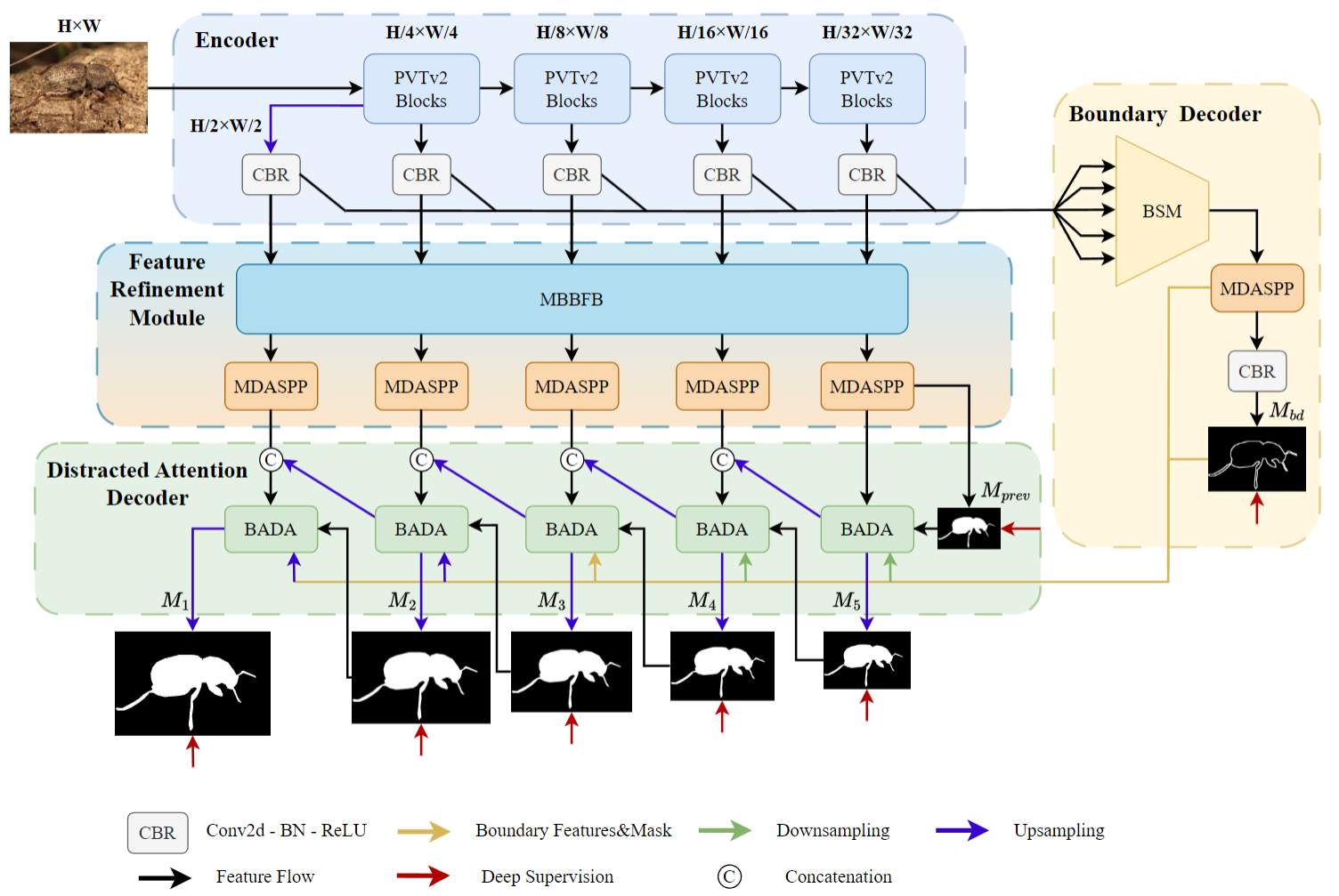 We further propose a Boundary-Aware Distracted Attention (BADA) block, which receives both the features